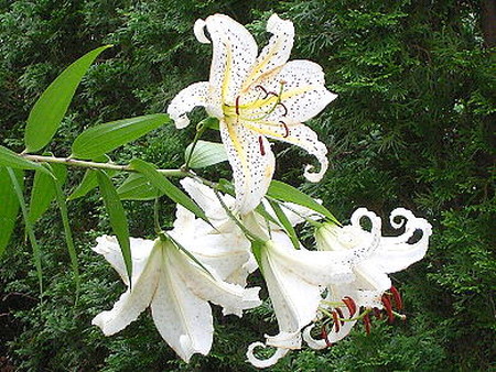 ☆ ヤマユリ(山百合)は日本を代表するユリのひとつで、純白の大輪に黄金色の斑点を持ち、芳香が強いのが特徴です。