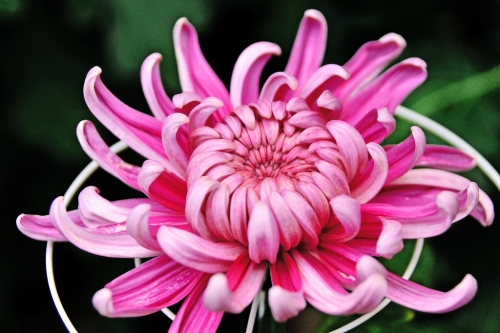 赤い菊の花言葉は「真の愛」。 菊は日本では長寿や高貴さの象徴とされ、皇室の紋章にも使われる特別な花です。その中でも赤い菊は、情熱や深い絆を表す色合いから「真の愛」という意味が込められています。