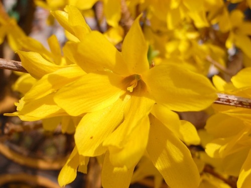 枝いっぱいに黄金の花を咲かせるレンギョウ。