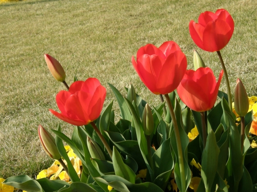 赤いチューリップは、情熱や愛を象徴する花ですが、