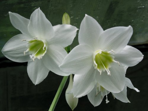 ユーチャリス(Eucharis)は、アマゾンリリーとも呼ばれる白い花で、花言葉は 「清らかな心」 とされています。
